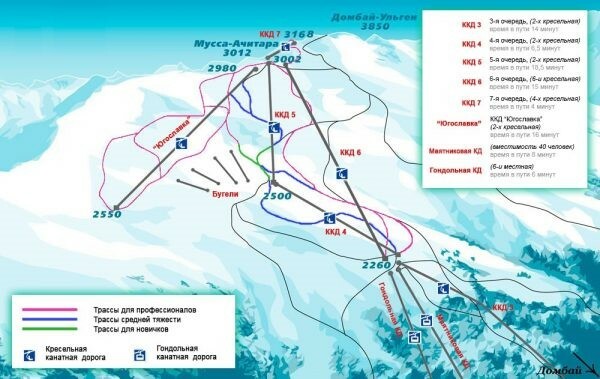 широкие и длинные серпантины Домбая подойдут как для тех, кто только осваивает зимние виды спорта, так и для опытных профессионалов. Есть учебная трасса или, как ее еще называют, «лягушатник».